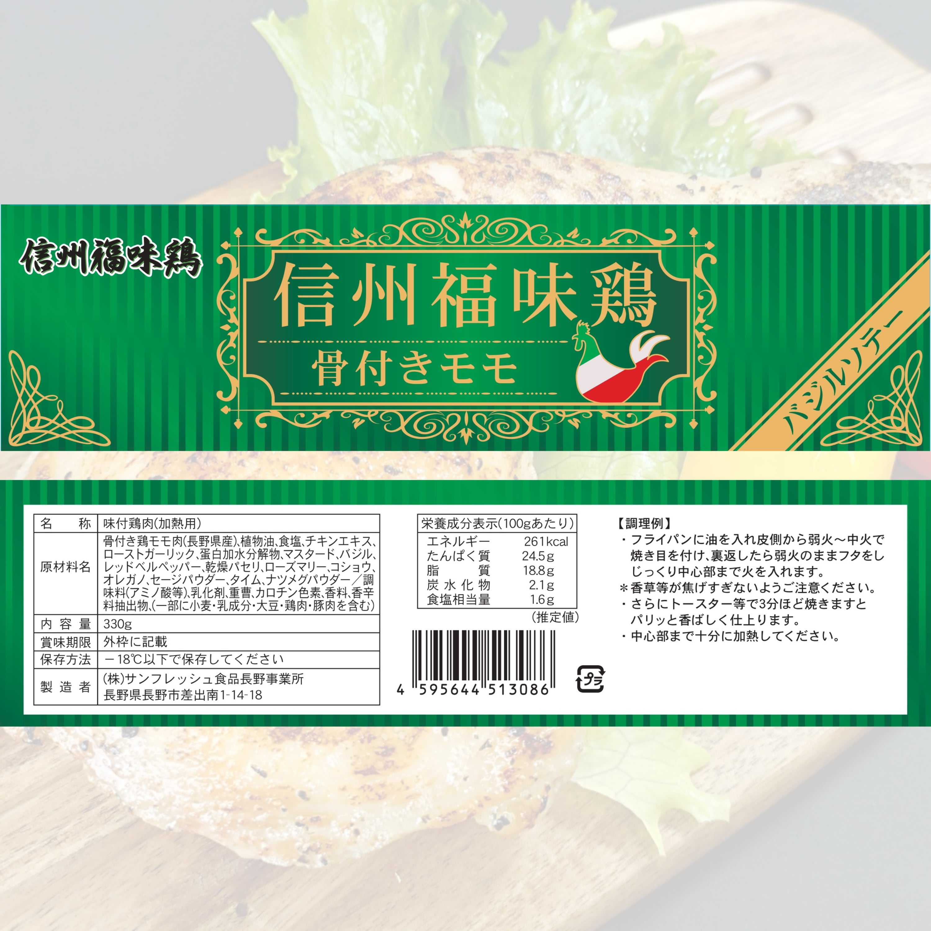 製品名: 信州福味鶏 骨付きモモバジルソテー